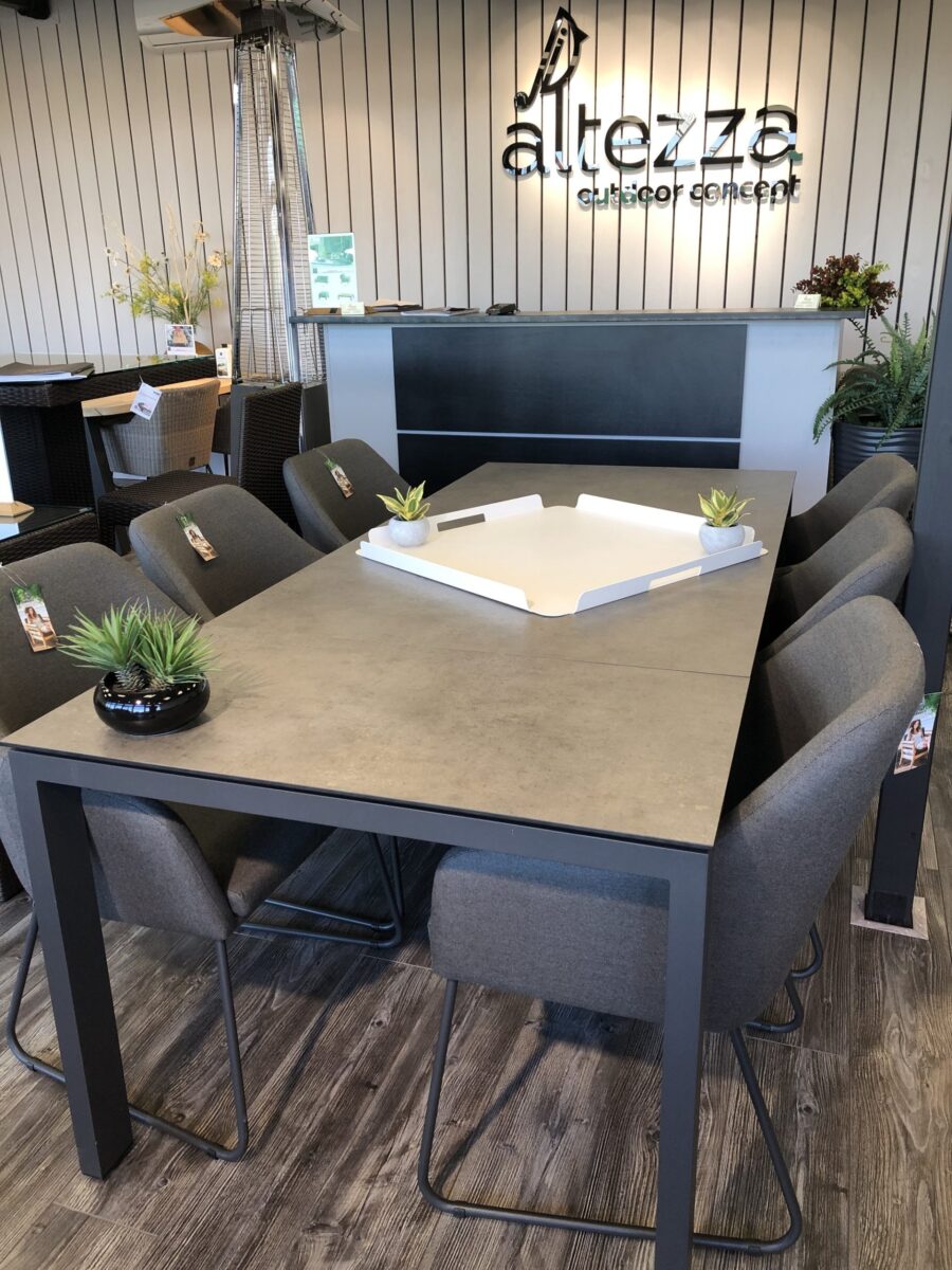 - Большие столы для компаний и торжеств. Если вы любите устраивать большие мероприятия и у вас есть просторная терраса или сад, стоит обратить внимание на крупные обеденные столы, которые вмещают от 8 до 10 человек. Большой стол на террасе позволит с комфортом разместить всех гостей, а также станет центром вечеринки на свежем воздухе.