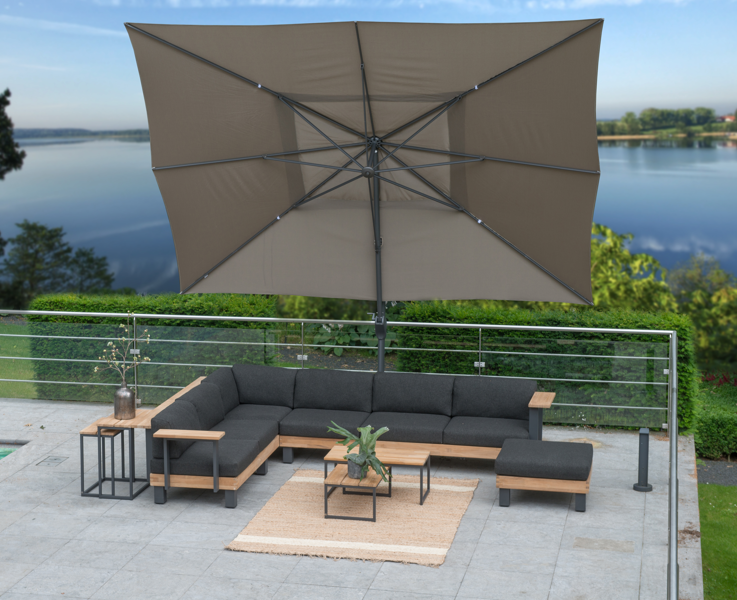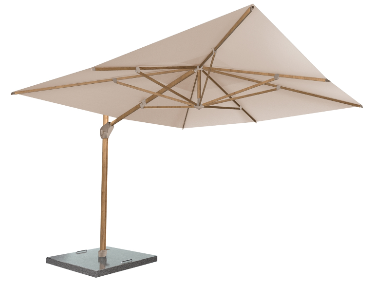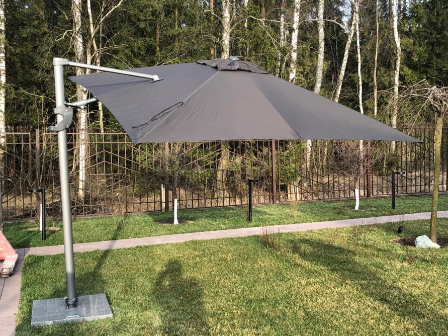 Предлагаемая модельная линейка относится к элитной категории. Решив купить садовый зонт, вы сможете избежать воздействия ярких солнечных лучей, укрыться от кратковременных осадков. Плотный полиэстер не утрачивает первозданный внешний вид даже спустя годы активного использования на свежем воздухе.