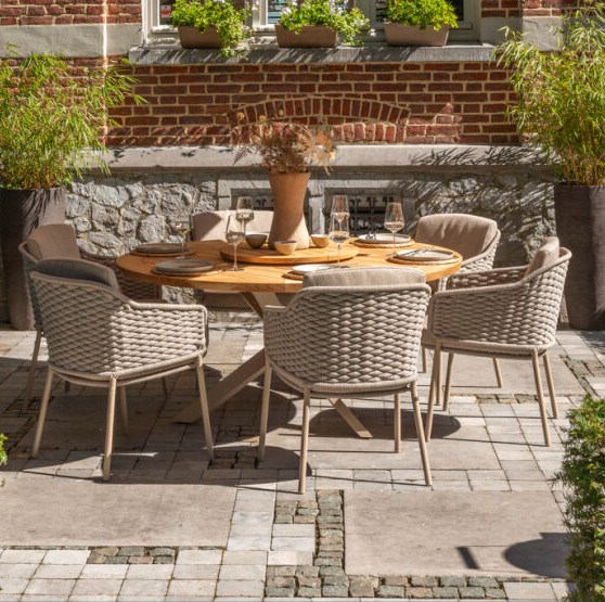 Круглая обеденная группа. Доставка по Москве и РФ. В ассортименте интернет магазина уличной мебели Altezza только надежные и проверенные европейские бренды.