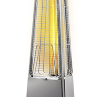 Газовый обогреватель изготовлен из устойчивой к коррозии легированной нержавеющей стали и защищен от попадания атмосферных осадков сверху четырехгранным отражателем, площадь поверхности которого составляет 0,5 м².