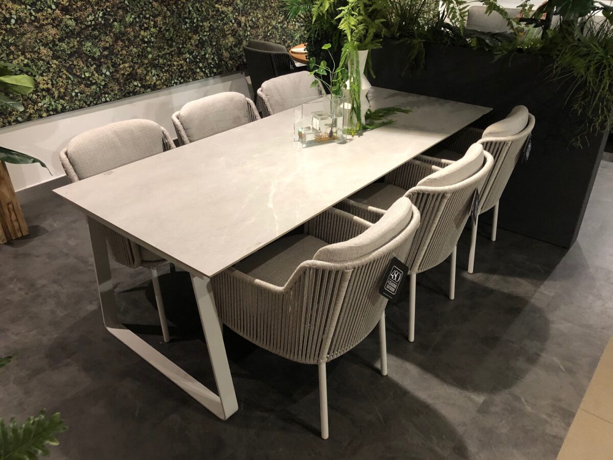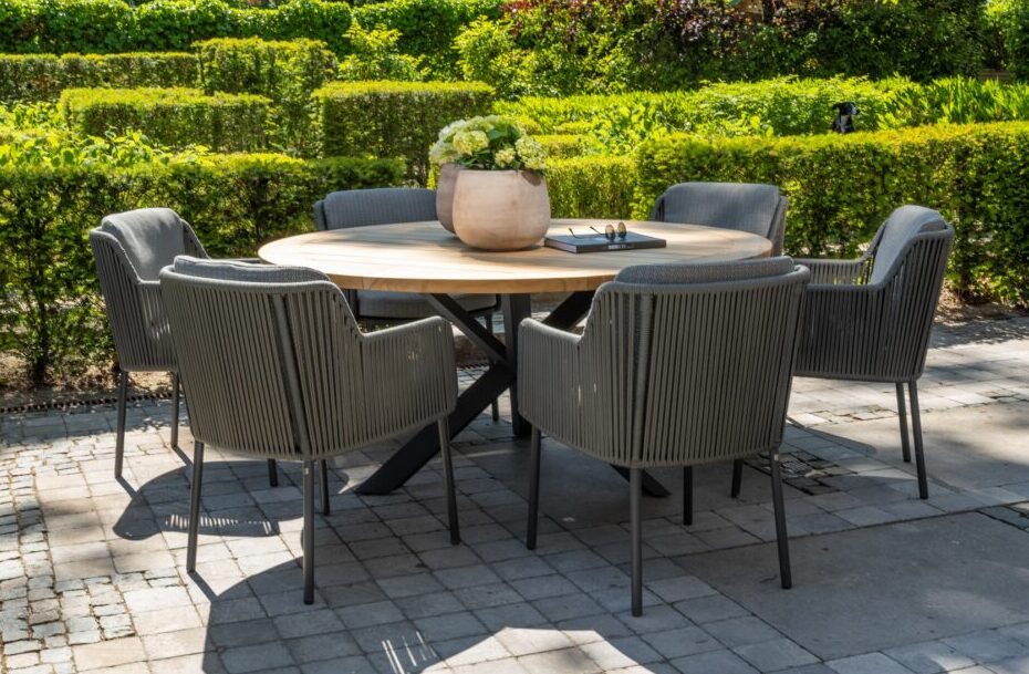 Всепогодный стильный обеденный уличный стул Bernini с применением веревочного плетения в цвете Frozen !