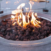Замените лавовый камень декоративным стеклом, оно придаст объем и красивое мерцание камину.