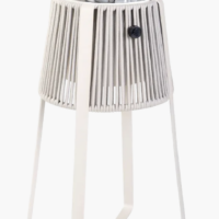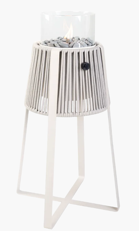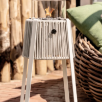 Изящная, высокая, выполнена на белом алюминиевом основании, верхняя часть в веревочном плетении из всепогодного шнура в сером цвете. Магия огня и стиля, эта горелка безусловный хит сезона!