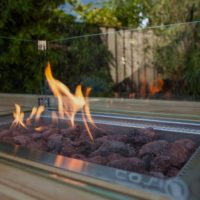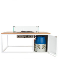 Модель оснащена прямой горелкой, рассчитана на баллон емкостью до 5 кг. Стол-камин комплектуется защитным стеклом и крышкой для горелки, если нет необходимости пользоваться горелкой, можно использовать всю поверхность стола для сервировки.