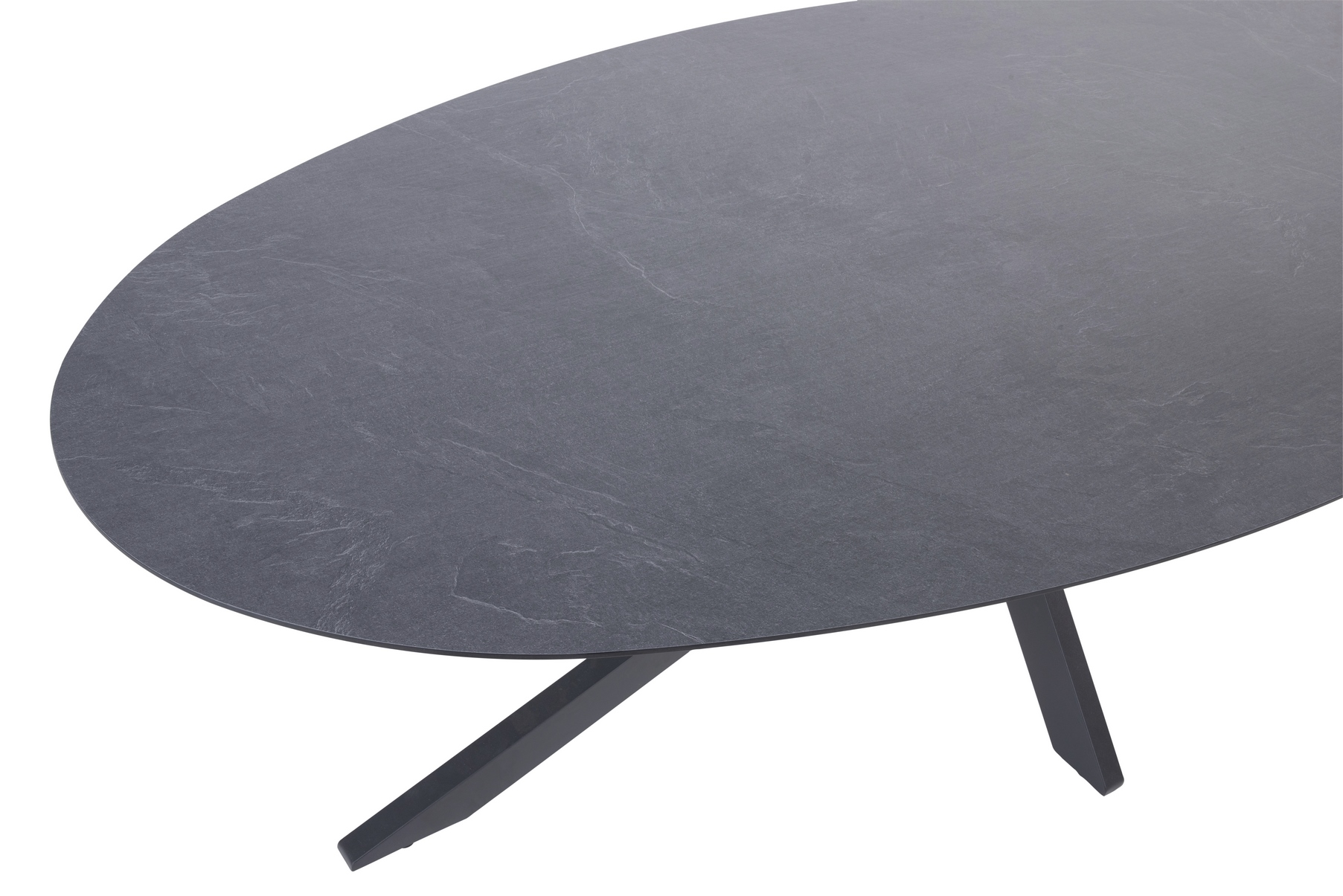 Стол PRIVADA в цвете антрацит со столешницей из современного и долговечного материала HPL (High Pressure Laminate) выполнен на устойчивом основании из алюминия.