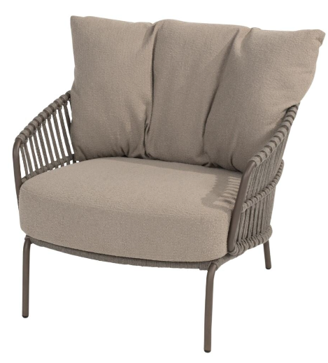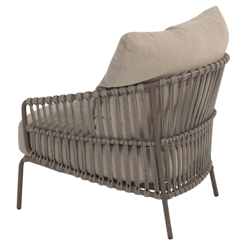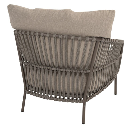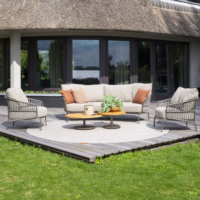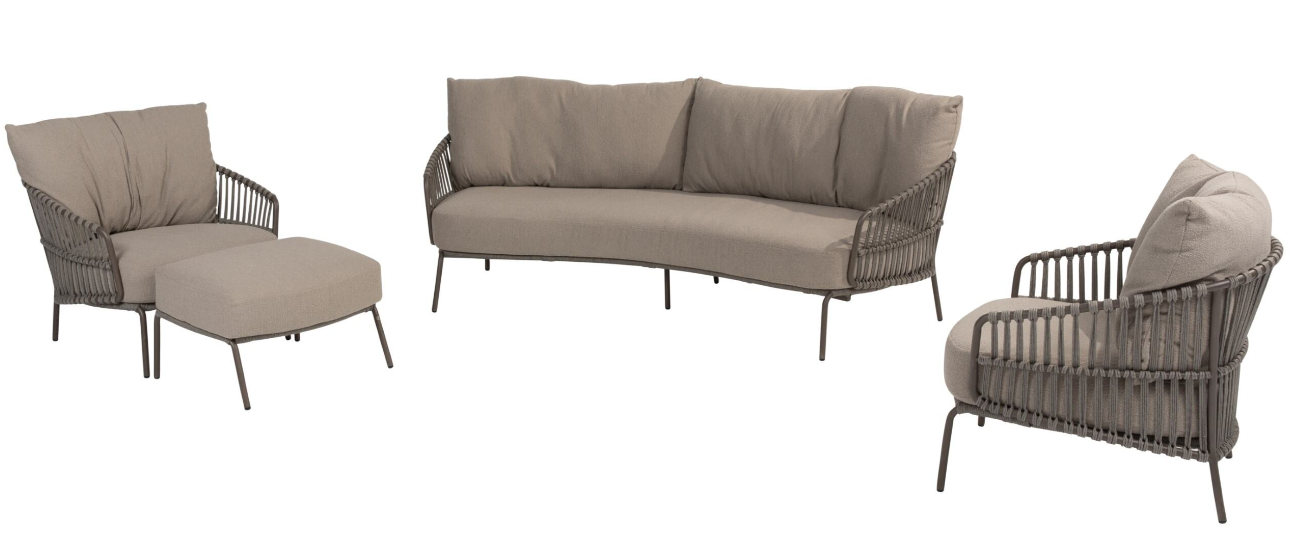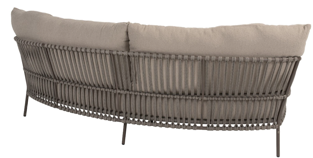 Основание комплекта CAPALBIO выполнено из алюминия в новом модном цвете Terre, чаша сиденья оплетена вручную круглым всепогодным шнуром в цвете Platinum, буклированные высокие подушки для максимально удобной посадки в бежевом цвете! Даже полукруглая форма сиденья дивана приглашает разместиться на нем дружной компании. Благодаря выбранной дизайнерами 4SO цветовой гамме материалов, этот комплект прекрасно сочетается с разными экстерьерами.
