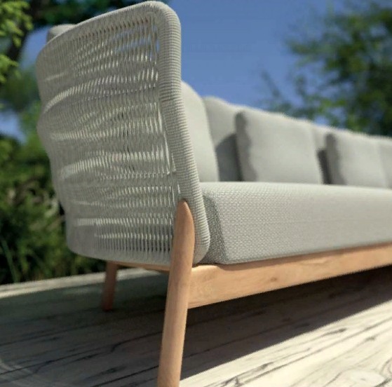 — Прочная уличная веревка сплетена вручную, крупнопористый наполнитель подушек и всепогодные чехлы на молнии из олефиновой ткани.