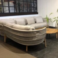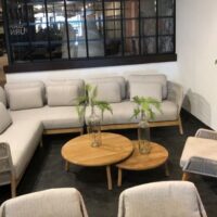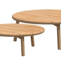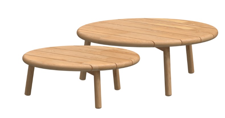 Прекрасным дополнением к этому модульному дивану служит сет из двух столиков Ceylon переменной высоты и диаметра. Столики так же выполнены из натурального тика.