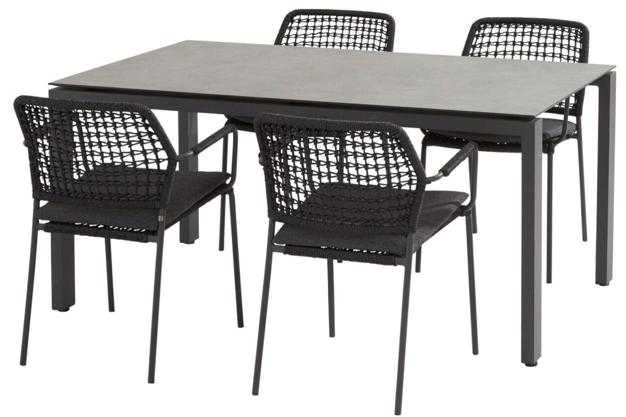Прочное основание из алюминия и ажурное плетение из уличного всепогодного шнура в цвете антрацит составляют основу стула Barista.
