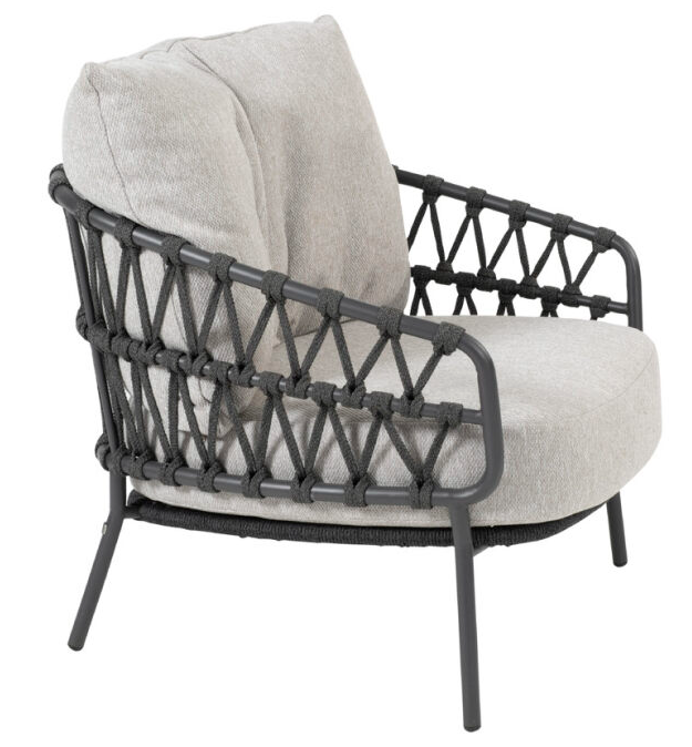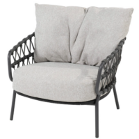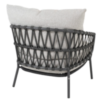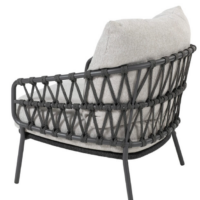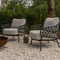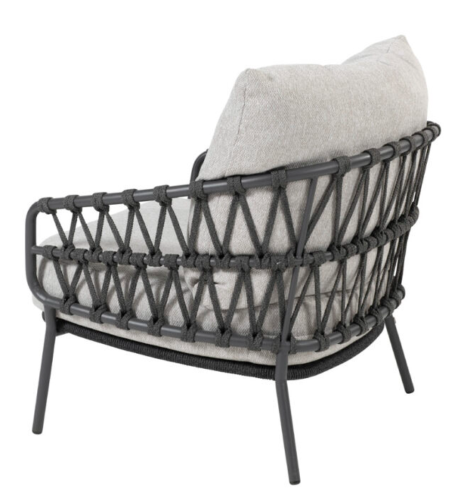 Выполнены с применением плоского всепогодного шнура Rope, основание из алюминия, всепогодный текстиль и наполнитель подушек, легкие и долговечные. Ажурное плетение, плавные линии, сочетание плетения в пепельно-сером цвете с более светлым цветом объемных подушек. Плетение всегда выполняется только вручную мастерами фабрики с многолетним опытом!