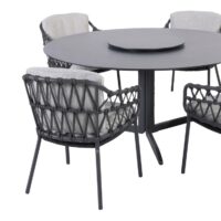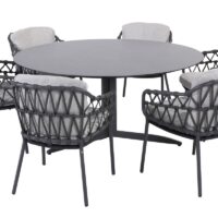Стол выполнен на устойчивом основании, благодаря такой форме ножки и диаметру столешницы 160 см достигается максимальное удобство посадки компании из 6 персон.