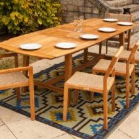 Выполнен полностью из натурального тикового дерева высочайшего качества,имеет наборную столешницу, классические прямые ножки с перекладиной для большей устойчивости !