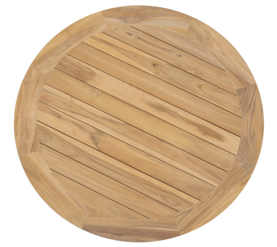 Столешница изготовлена из тикового дерева самого высокого класса А золотисто-коричневого цвета, натуральная текстура подчеркнуто теплая и живая!