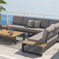 Столик с наборной тиковой столешницей и боковые платформы — одна из изюминок этого комплекта, просто, стильно и со вкусом. Отделка платформы модульного дивана тиком создает неповторимый стиль и дополнительные места, которые позволят Вам разместить элементы декора, любимую книжку или чашечку кофе!