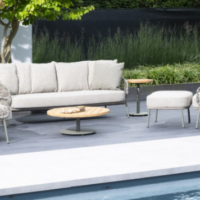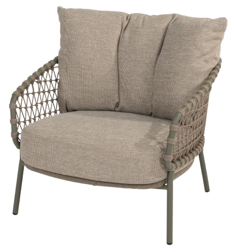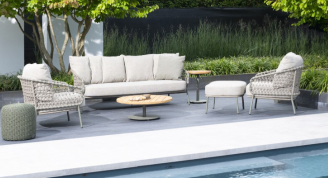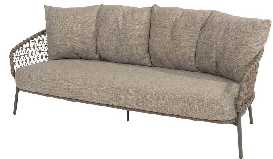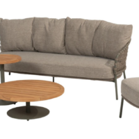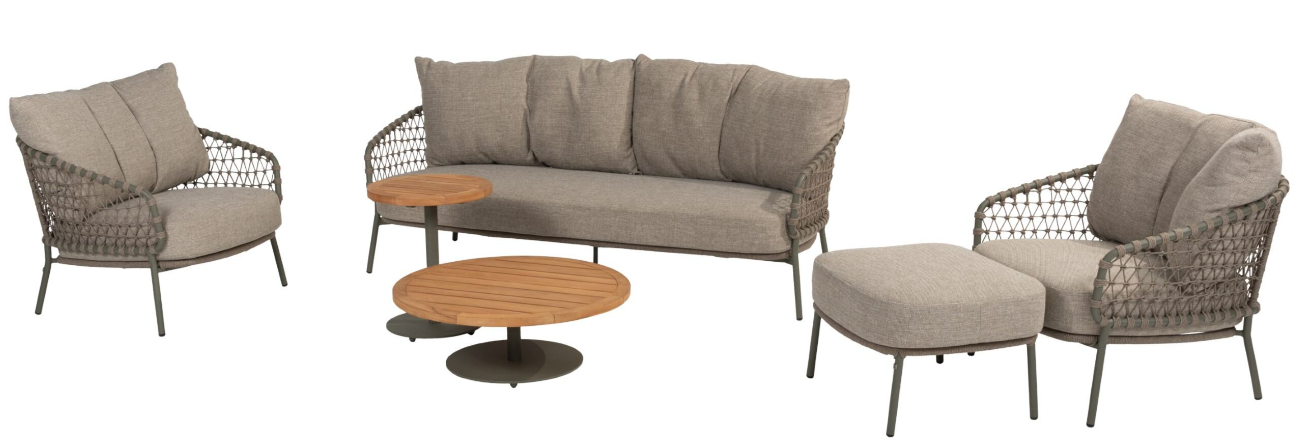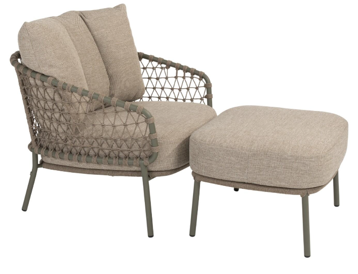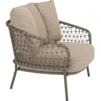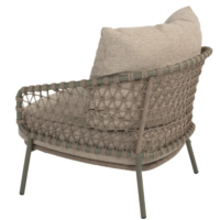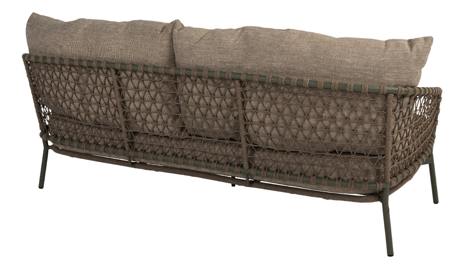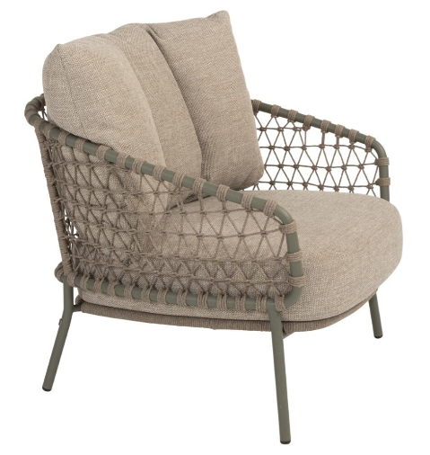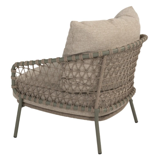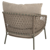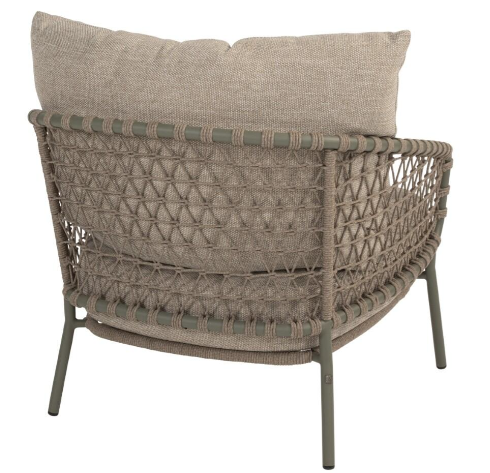 Логичное продолжение нашумевшей коллекции, вызвавшей неподдельный интерес у покупателей. Необычное сочетание цветовых решений: прочное основание из алюминия и подушки выполнены в оливковом цвете, а ажурное плетение из круглого всепогодного шнура — напротив, в цвете Latte.