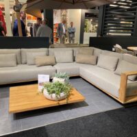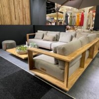 Для этой коллекции фабрика использует самые качественные и надежные материалы. Объемные подушки на спинке и сиденье, вспомогательные подушечки под поясницу, высокие широкие подлокотники обеспечивают максимальный комфорт. Тиковое дерево придает теплый и естественный вид, текстиль приятный на ощупь, устойчив к осадкам и пыли, простой в уходе.
