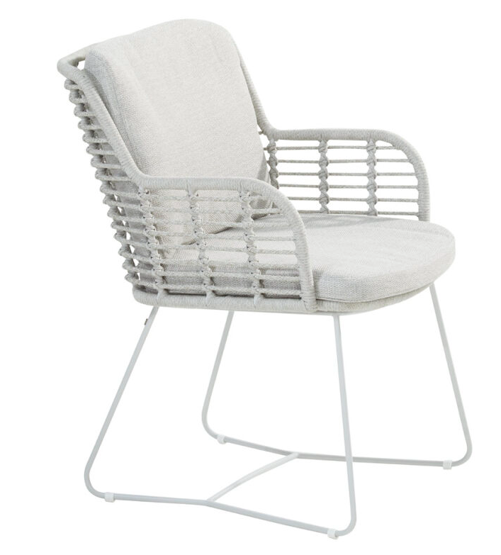 Стулья FABRICE выполнены вручную мастерами фабрики с многолетним опытом, холодный светло-серый цвет Frozen — новинка 2024 года и безусловный тренд мебели для улицы в Европе веревочного плетения. Алюминиевый легкий и прочный каркас основания, удобные подлокотники, спинка оптимальной высоты, плавность линий и ажурное веревочное плетение — отличительные особенности этой модели!