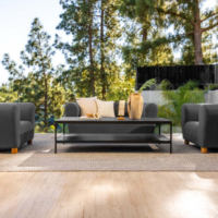 Трехместный диван, глубокие кресла, высокие подлокотники, большой кофейный столик с полочкой для книг и столешницей из керамики — отличительные черты этого набора. Предлагаем Вам вынести комфорт дома за его пределы, с таким же удобством разместиться в саду, на террасе, в зоне бассейна!