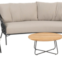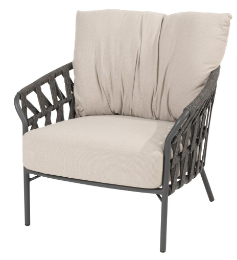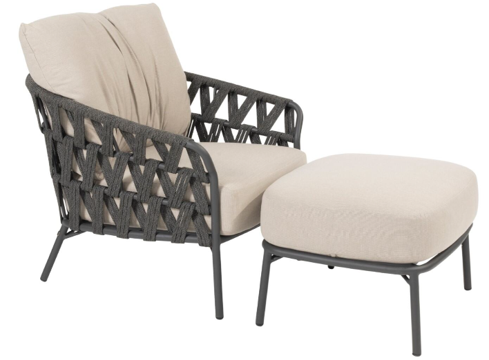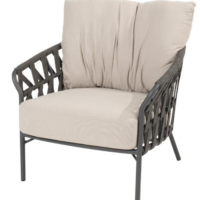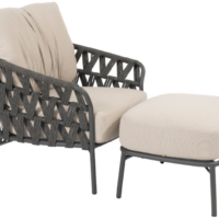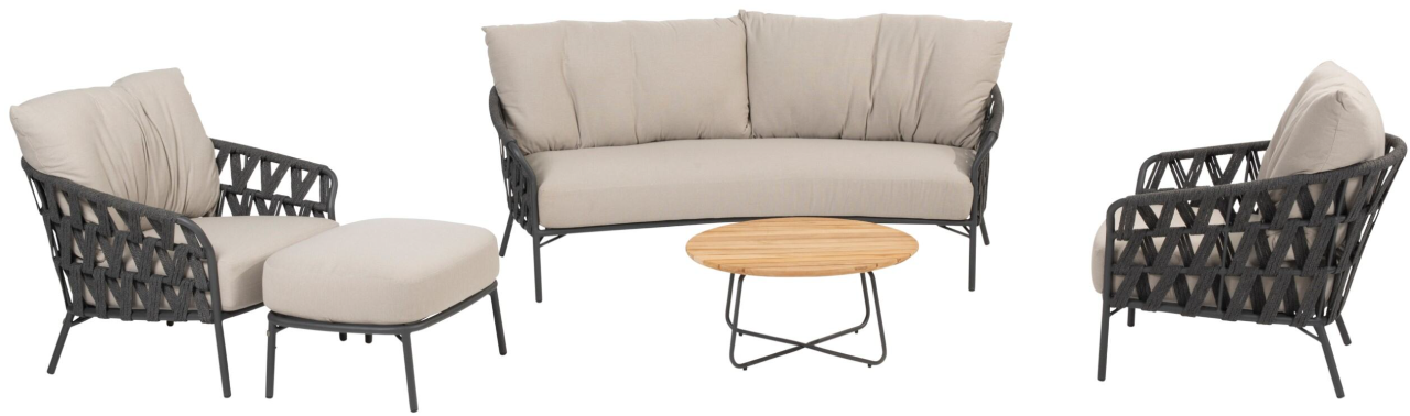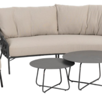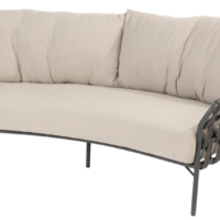Оригинальная полукруглая форма сиденья дивана, плавные линии подлокотников, стильное веревочное плетение из тройного плоского шнура, комфортная посадка. Основание выполнено из алюминия в цвете антрацит, объемные мягкие подушки на спинку, чехлы из олефиновой ткани светлых пастельных тонов. Все элементы мебели выполнены вручную лучшими мастерами фабрики с многолетним опытом, исключительно для Вас и Ваших близких. Комплект создает ощущение легкости за счет своих технических и цветовых решений!