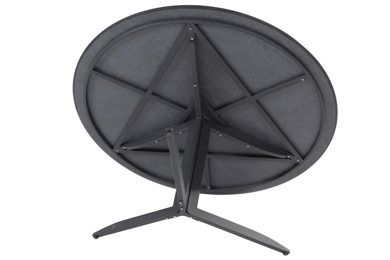 Стол EMBRACE в цвете антрацит со столешницей из современного и долговечного материала HPL (High Pressure Laminate) выполнен на устойчивом основании из алюминия.