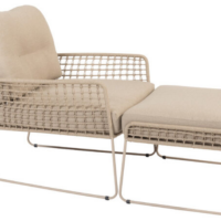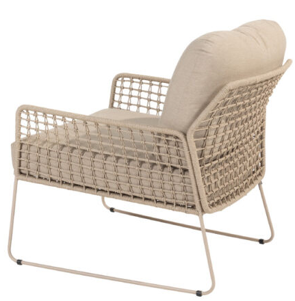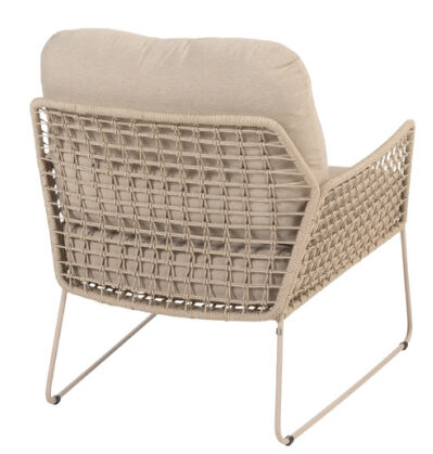 Основание этой мебели выполнено из легкого и долговечного алюминия, перекрестное плетение из круглого всепогодного шнура Rope в светло — бежевом цвете.
