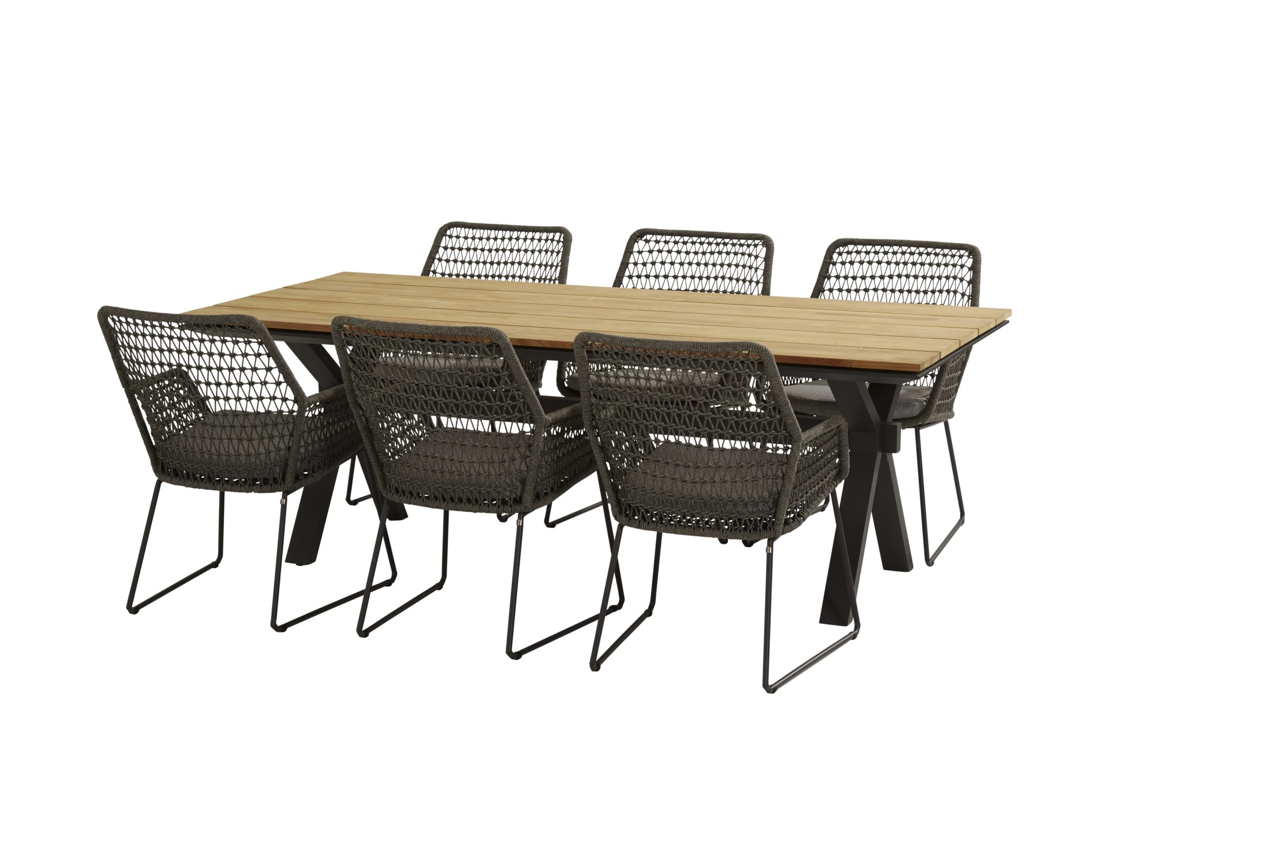 Обеденный стол для улицы Goa, стильный и минималистичный. Стол выполнен на алюминиевом каркасе в цвете антрацит со столешницей HPL (High Press Laminate) в темно-сером цвете, поверхность обеденного стола — самая практичная из столешниц на сегодняшний день в мире мебели для открытых пространств и последний тренд Европейской моды. Для изготовления столешницы HPL прессованная и пропитанная смолами целлюлоза подвергается воздействию высокой температуры и давления. В результате получается монолит, который не подвержен расслоению в процессе эксплуатации. За обеденным столом с удобством могут разместиться до 6 человек ! Стулья и кресла всегда в нашем ассортименте !