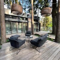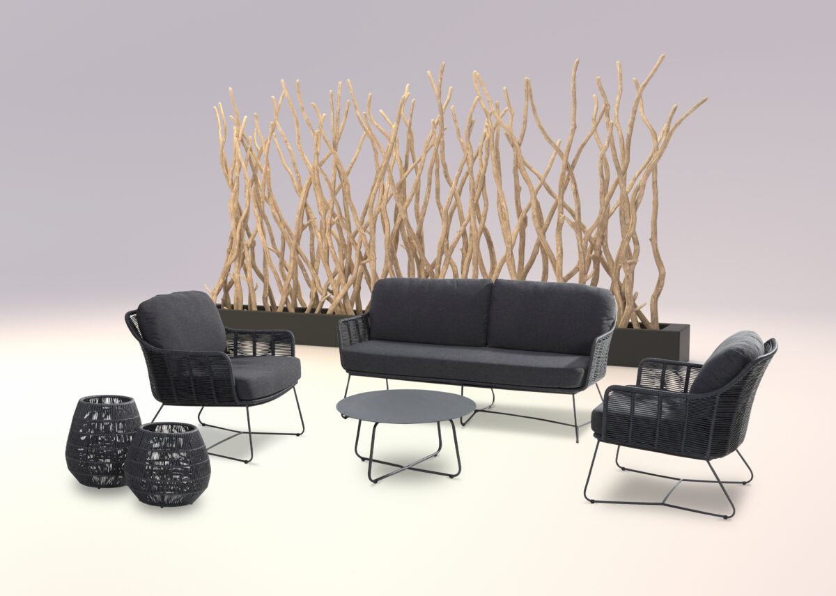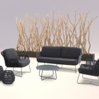 Каркас кофейного комплекта изготовлен из нержавеющей стали. Это устойчивый к атмосферным воздействиям материал, который подходит для использования на открытом воздухе и выдерживает большие нагрузки. Вы можете найти этот прочный материал во многих наших коллекциях уличной мебели.