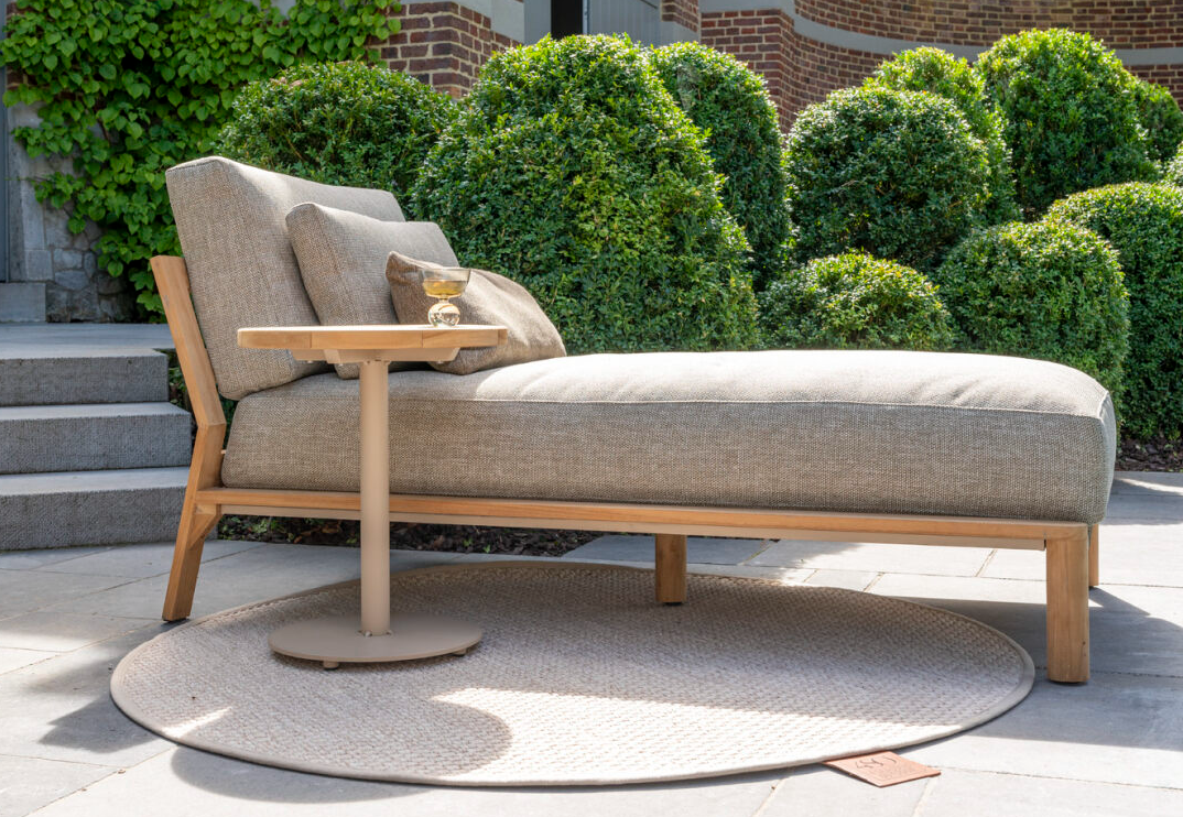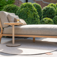 Массивное основание выполнено из натурального тикового дерева, объемный матрас с чехлом из олефиновой ткани, всепогодный наполнитель !