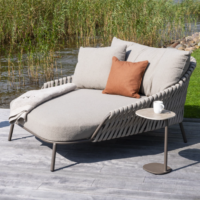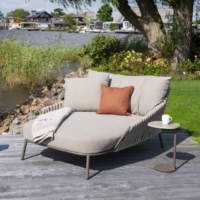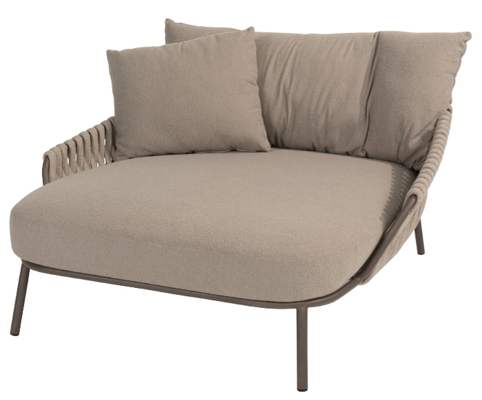 Стильный дизайн, новые цвета и ткани, плавные линии, комфорт и удобство в сочетании с высочайшей практичностью. Основание кровати MONTERA выполнено из алюминия в новом модном цвете Terre, изголовье оплетено вручную круглым широким всепогодным шнуром в цвете Latte. В комплект входит большой 2х местный буклированный матрас, сплошная подушка у изголовья и дополнительная подушка!