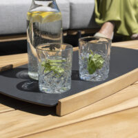 Изящный поднос LUZ изготовлен из тикового дерева и алюминия. Тик имеет золотисто-коричневый цвет и натуральную текстуру.