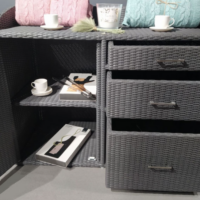 Это не просто красивый и стильный органайзер, но и очень удобный аксессуар. Уличный комод от Швейцарской фабрики создан мастерами с многолетним опытом вручную из качественного волокна Rehau (Австрия). Устойчив к атмосферным осадкам, ультрафиолетовым лучам, не требует особого ухода. В верхней части комода толстое каленое стекло для защиты плетения от пыли и порезов, имеется три выдвижных ящика и отсек с дверцей, за которой пространство с полочкой.