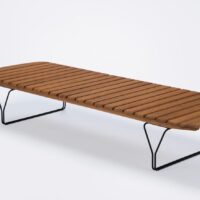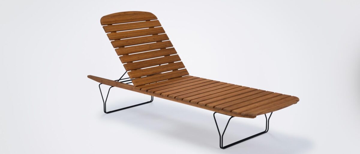 MOLO — это шезлонг-скамейка, который изготовлен из бамбуковых ламелей с декоративной конструкцией ножек из металла. Каркас шезлонга выкрашен в черный цвет атмосфероустойчивой порошковой краской.