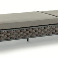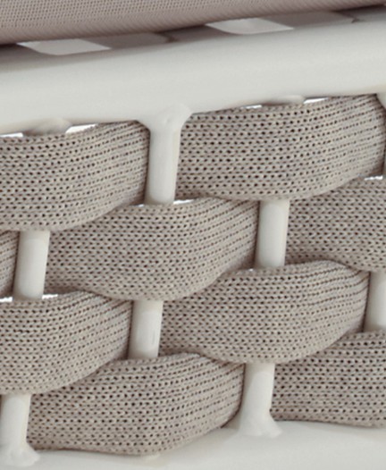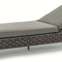 Выполнен на добротном трубчатом сварном основании из алюминия в темно-сером цвете, бока которого оплетены круглым всепогодным канатом, как будто бабушка приложила руку. Прорезиненные колеса на литых дисках помогают легко перемещать шезлонг. Спинка имеет несколько положений для выбора максимально удобного наклона. Мягкий матрас из сетчатого материала Batyline® французской фабрики Serge Ferrari обеспечивает комфортный отдых. Волокно практически невозможно порвать!