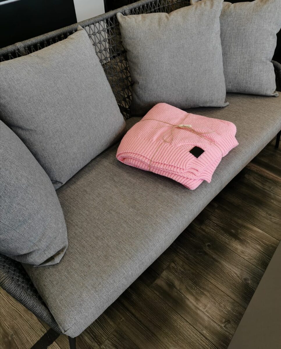 Новинка этого сезона фактурный вязаный плед из эко-пряжи обнимет и согреет Вас поздним вечером или в пасмурный день!