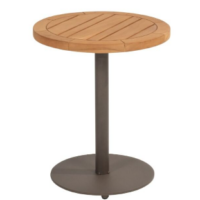 Тепло и фактурность столешницы из тикового дерева в сочетании с удобством и устойчивостью алюминиевого основания. Круглая ножка-стойка не мешает ногам, позволяет создать композицию из двух столиков разной высоты и диаметра, например со столиком VOLTA Terre 80 см.
