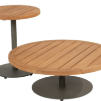 Тепло и фактурность столешницы из тикового дерева в сочетании с удобством и устойчивостью алюминиевого основания. Круглая ножка-стойка не мешает ногам, позволяет создать композицию из двух столиков разной высоты и диаметра, например со столиком VOLTA Olive 45 см.