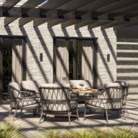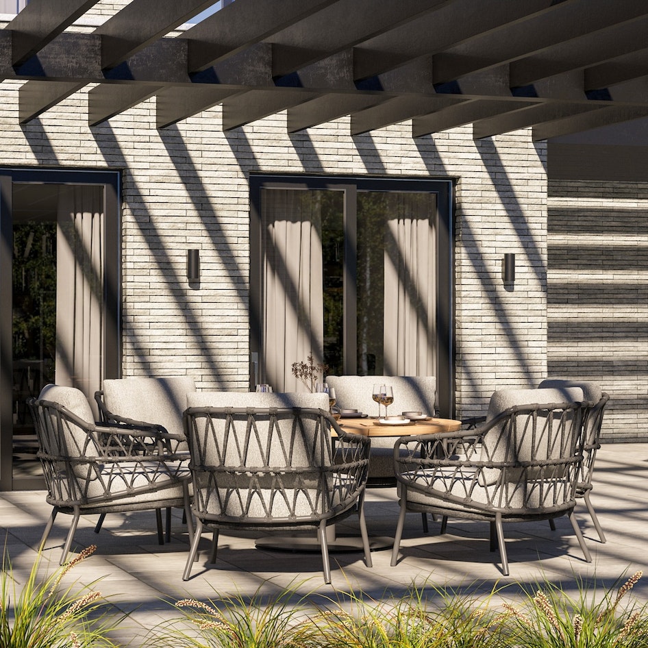 Плетение уличного кресла Calpi выполнено вручную в цвете антрацит в сочетании с подушками светло-серого цвета. Вы можете создать свой неповторимый образ террасы, дополнив комплект обеденным столом, подносом и другими аксессуарами из нашего ассортимента. Все материалы мебели всепогодные и исключительного качества, мебель можно использовать круглый год.
