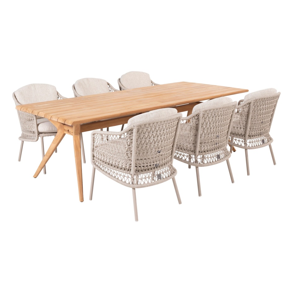Уличный стул обеденный Puccini имеет стальное основание в цвете латте, ажурное воздушное плетение выполнено вручную в бежевом цвете в сочетании с подушками светло-бежевого цвета. Модель имеет продуманную эргономику, каждый наклон просчитан для максимального расслабления, высокие спинки с мягкими подушками покорят Вас с первого знакомства.