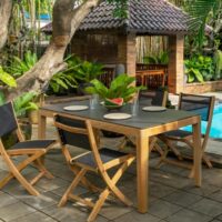 На сиденье и спинке практичный материал Textilene, его легко мыть, продувается и не выгорает. Тик, используемый в изготовлении этого стула — только класса А. Также, как всю нашу мебель, стул можно использовать круглый год. Обратите внимание на столы из коллекции AQUARIVA, с ними у Вас получится прекрасный обеденный комплект и композиция получит законченный вид!