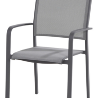 Штабелируемые уличные стулья TOSCA — удобное и практичное решение рачительных хозяев. Легкое алюминиевое основание, сетчатый материал Textilen на спинке и на сиденье, удобная форма изогнутых подлокотников.