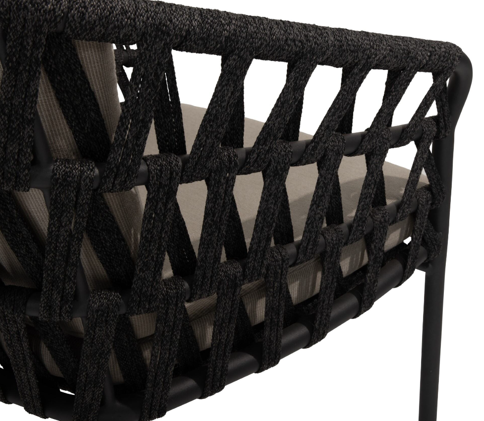 Новинка 2025 года, изящное творение дизайнеров фабрики 4Seasons outdoor, воздушный, «вкусный», удобный. Плавные линии подлокотников, стильное веревочное плетение из тройного плоского шнура, комфортная посадка!