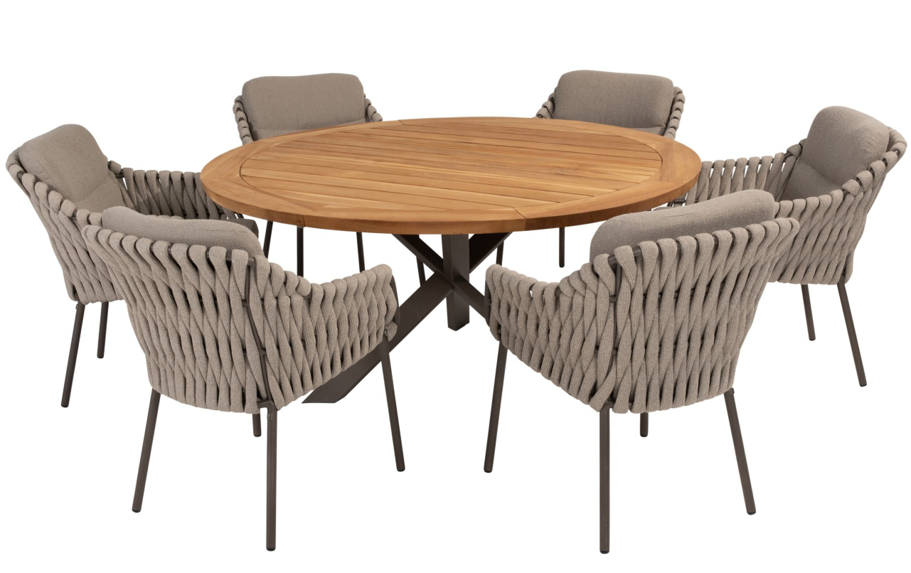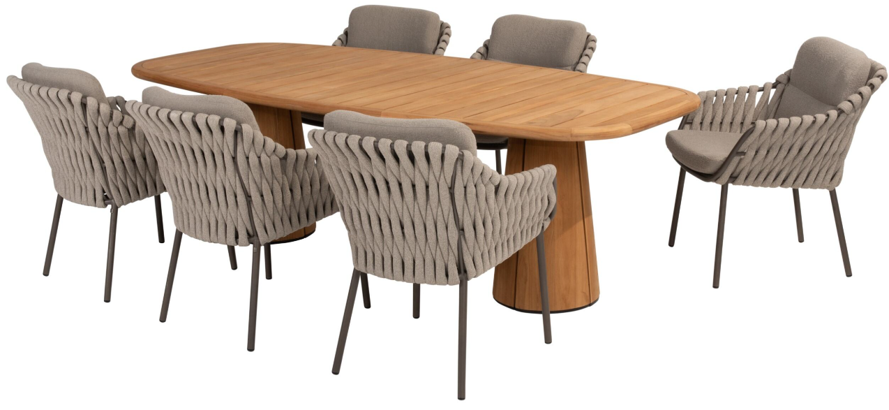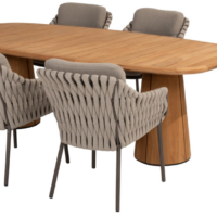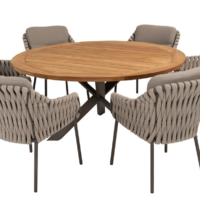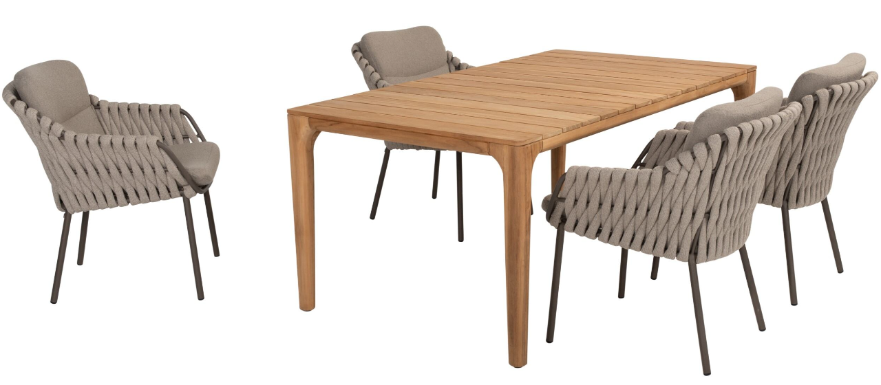 В ее создании принимали участие одни из лучших дизайнеров фабрики 4Seasons outdoor, в концепции воплощены передовые тренды Европейской уличной моды. Непревзойденный стиль, новые цвета и ткани, плавные линии, комфорт и удобство в сочетании с высочайшей практичностью. Основание обеденного стула MONTERA выполнено из алюминия в новом модном цвете Terre, чаша сиденья оплетена вручную круглым широким всепогодным шнуром в цвете Latte, две буклированные подушки для максимально удобной посадки!