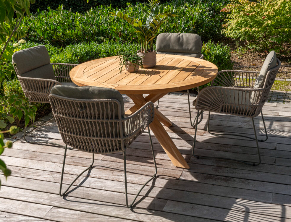 Удивительный комфорт и возможность сочетать с различными столами из тикового дерева, например, со столом Prado или Liam.