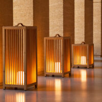 Коллекция оснащена перезаряжаемой светодиодной подсветкой с гарантийной продолжительностью 15 000 часов. Светильник уличный работает около 5 часов при максимальной настройке, что делает её идеальной для длительных вечерних мероприятий или создания атмосферы уюта на протяжении всего вечера.