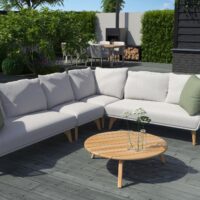 Вы можете создать свой неповторимый кофейный комплект или модульный диван, дополнив его кофейным столом Zucca из нашего ассортимента. Тиковое дерево, применяемое в изготовлении этого столика, давно славится своими свойствами, устойчивостью к осадкам и УФ-излучению.
